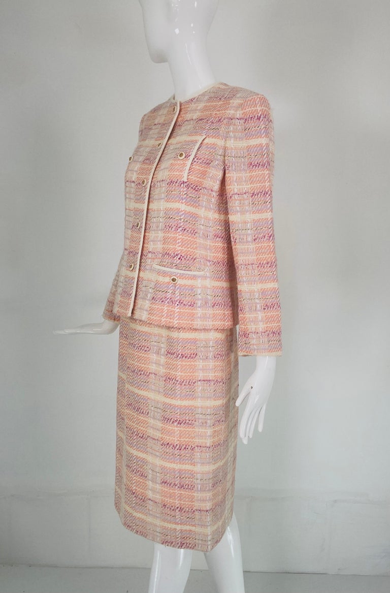 Chanel Creations Pastel Peach Cream Lavender Tweed Skirt Suit 1970s For Sale At 1stdibs